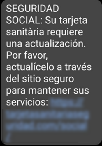 La Seguridad Social no ha suspendido tu tarjeta sanitaria, es un smishing